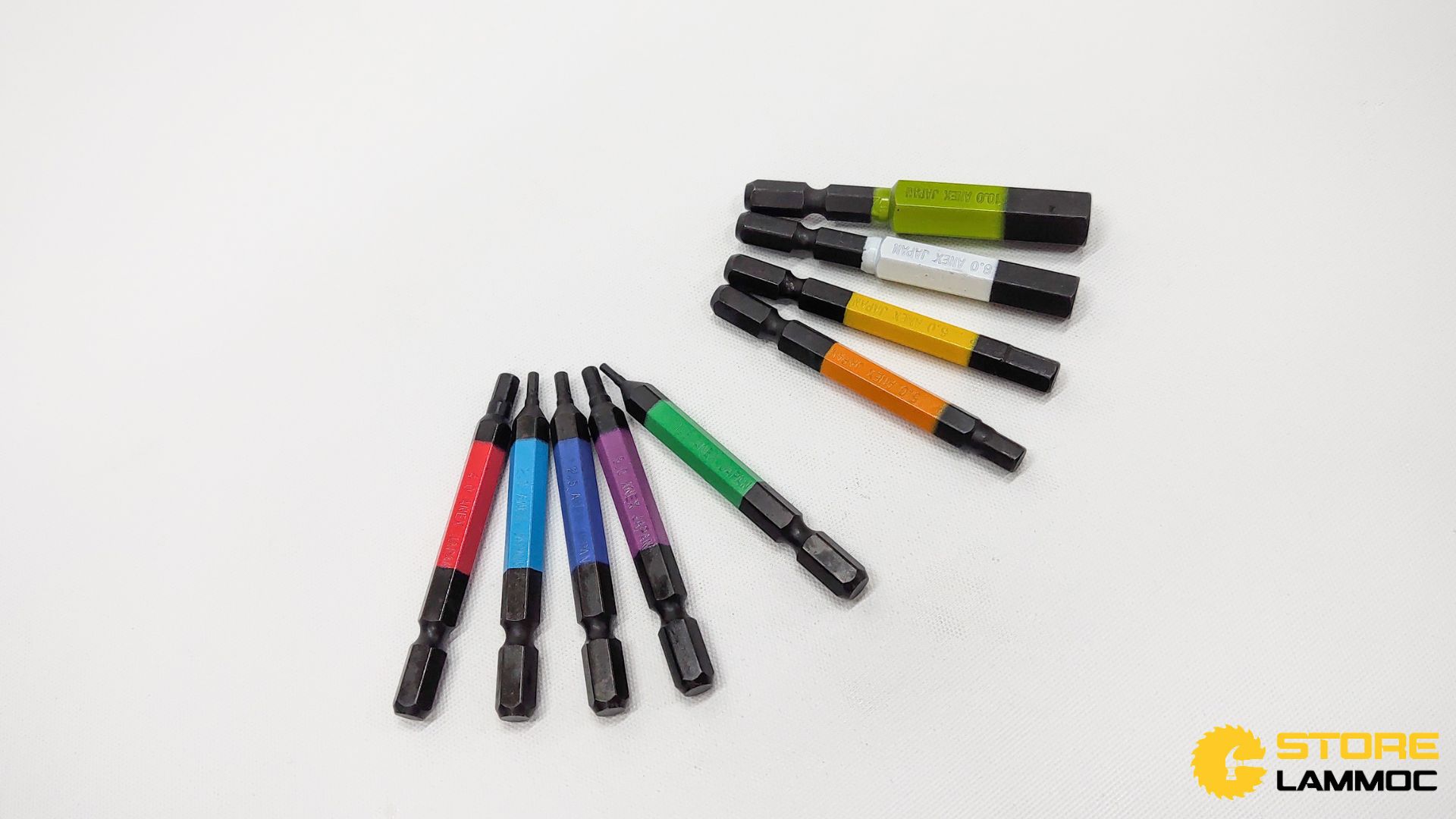 - Bộ 9 mũi vít đủ các kích thước đầu lục giác phổ biến để có thể sử dụng cho nhiều loại đinh và ốc vít khác nhau.