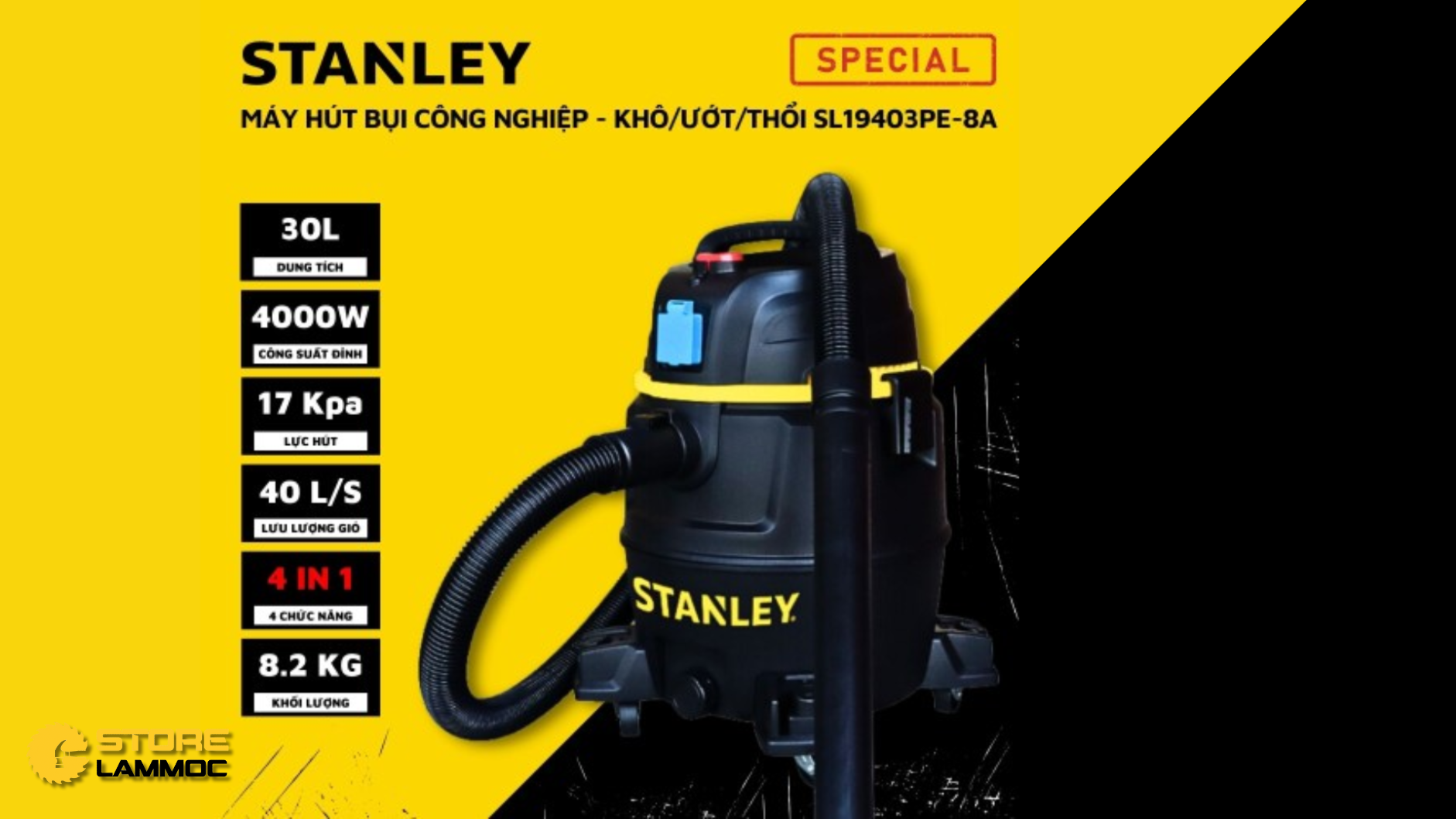 Máy hút bụi công nghiệp Stanley SL19117 30lit không chỉ nổi bật bởi thương hiệu mà còn bởi các tính năng ưu việt mà nó mang lại.