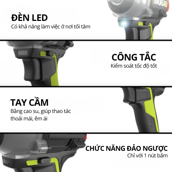 Bạn đang xem: Máy bắn bu lông pin 20v lực 500Nm Worx WU289