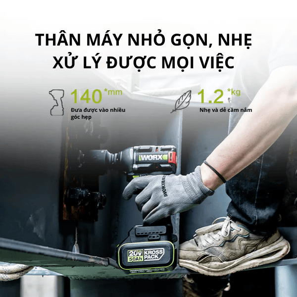 Máy bắn bu lông Worx WU289 với lực siết lên đến 500Nm là lựa chọn hoàn hảo cho công việc siết và tháo bu lông nhanh chóng, chính xác.